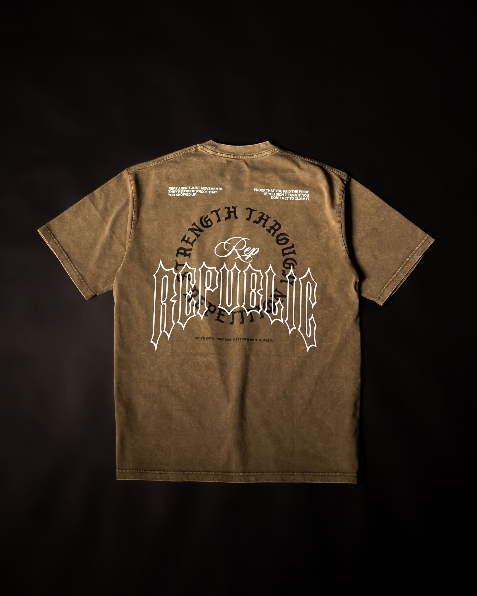 The Strength Through Reps Tee represents the foundation of Rep Republic. Every set, every rep, every day you show up adds up.
